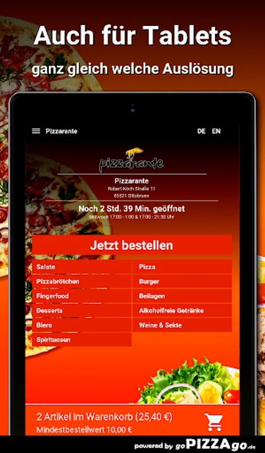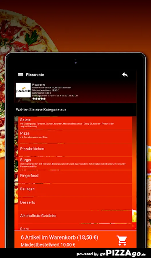 Of course, you can safely order numerous delicacies in our pizza service here in our online shop. We offer 108 dishes. In addition to delicacies, we have drinks on offer: Bonaqua table water, Sprite, Coca-Cola light, Paulaner Spezi, Fanta, orange juice, multivitamin juice, Mezzo Mix.What are our top sellersOur opening times