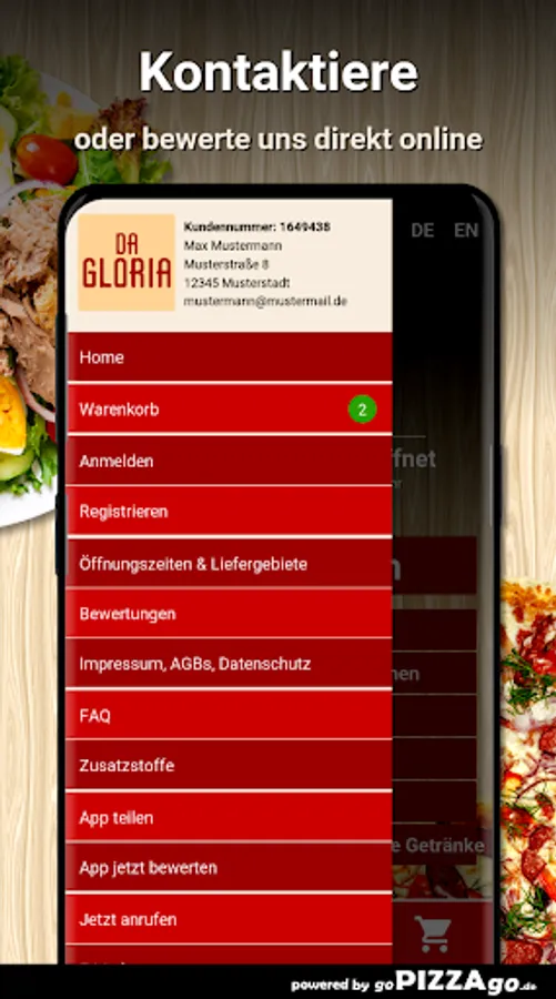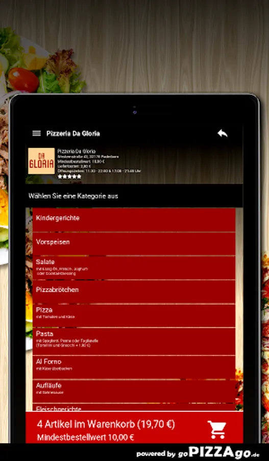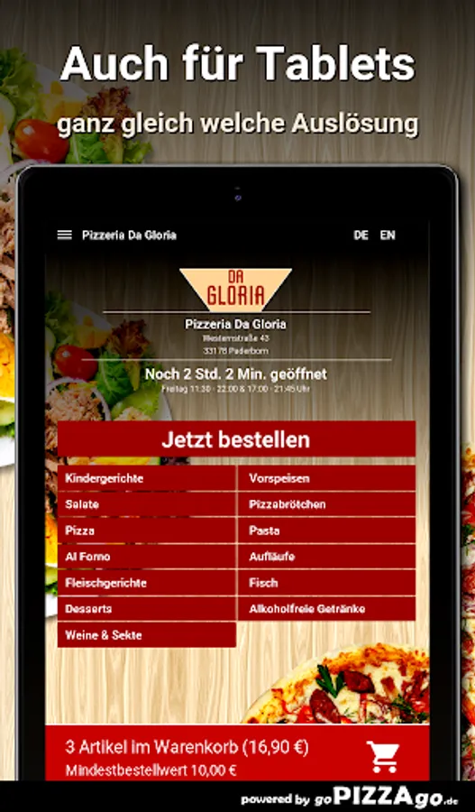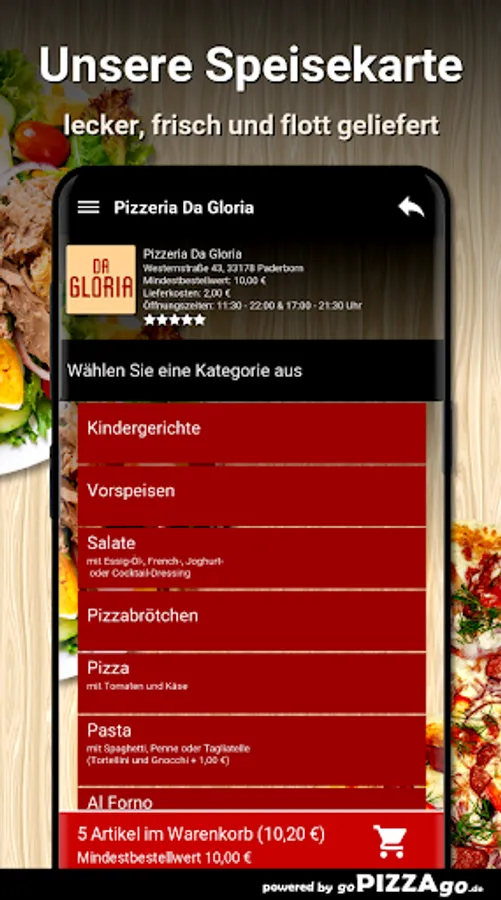 Pizzeria Da Gloria - your delivery service in Paderborn Do you fancy casseroles, salads, Al Forno, starters, meat dishes?