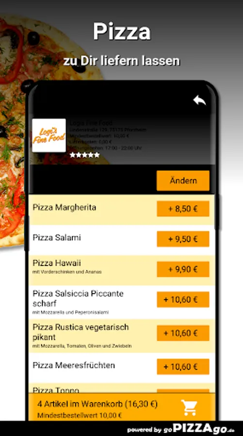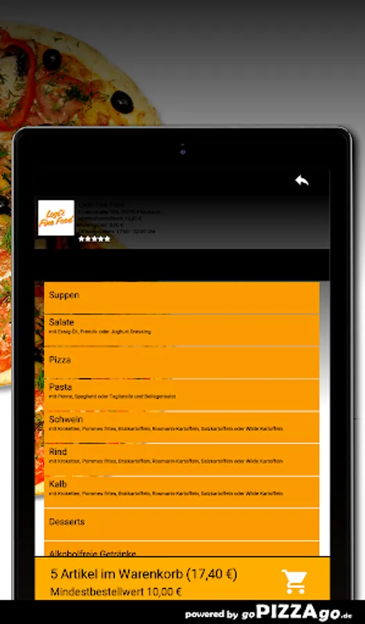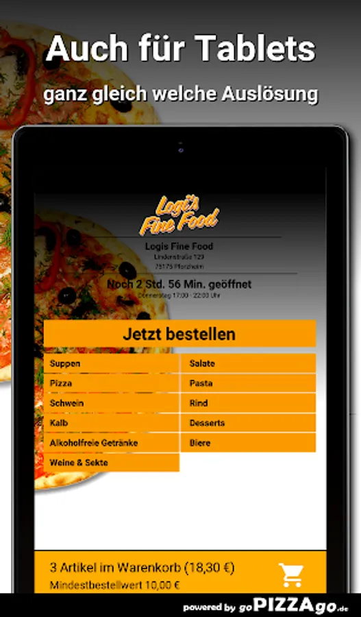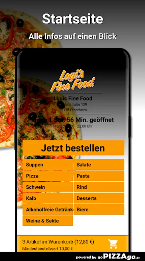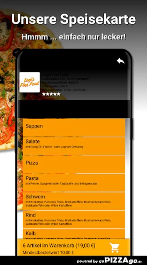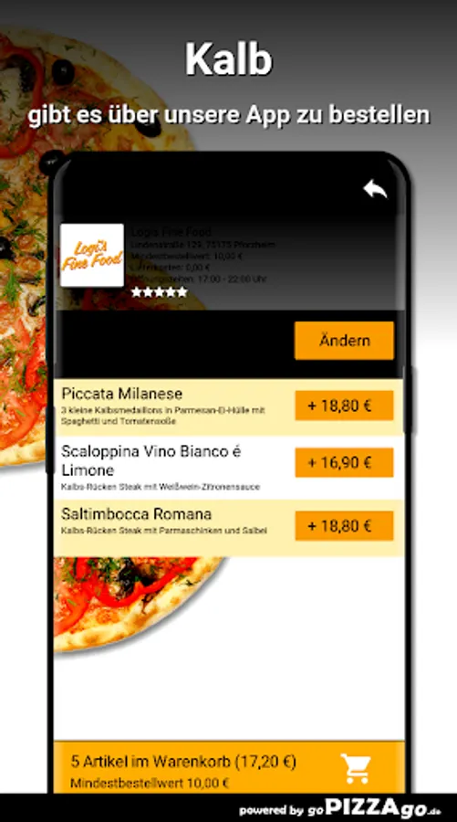 Logis Fine Food - your delivery service in PforzheimAt Logis Fine Food you can definitely order salads, pasta, veal, beef and pizza online and have them delivered.