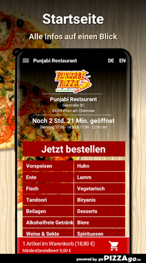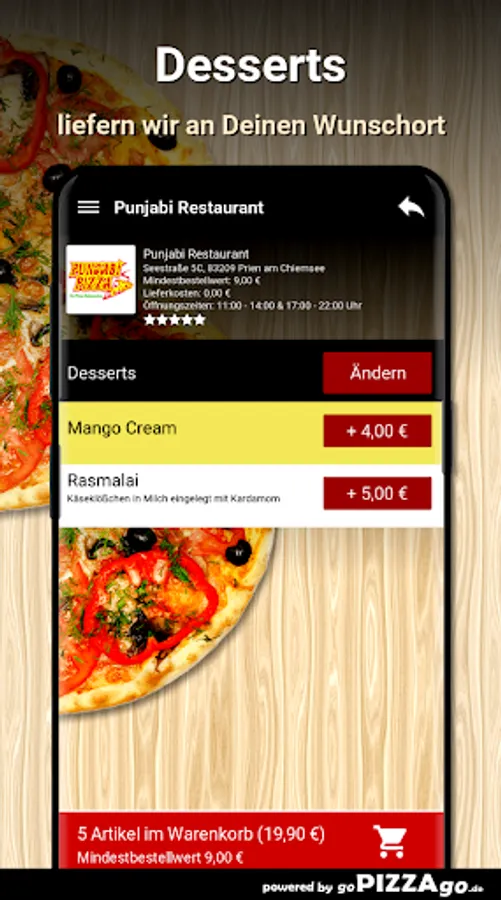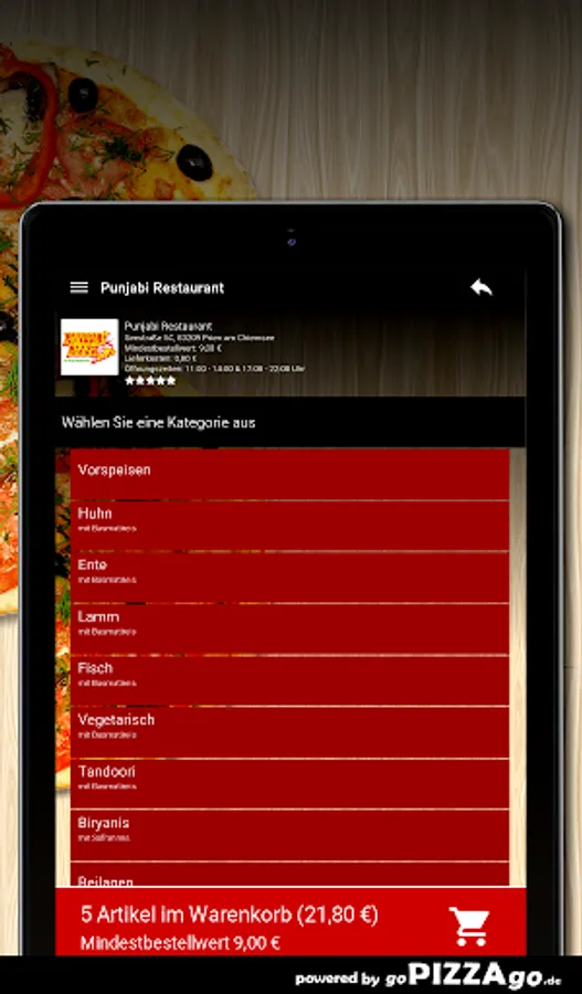 You can safely order numerous specialties from the delivery service Punjabi Restaurant (83209 Prien am Chiemsee). With us you have a selection of over 77 foods such as Fish Mango, Vegetable Jalfrezi, Chicken Tikka Jalfrezi, Vegetable Pakora, Bhindi Chana. We continue to deliver drinks like Mango Lassi, Lassi Sweet, Fanta, Sprite, Lassi Salty.Punjabi Restaurant Top-7When we deliver your food
