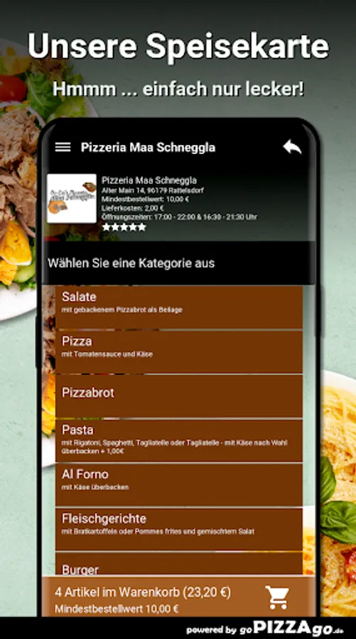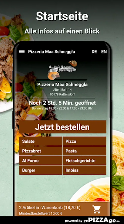 Fleischgerichte, Salate bei Pizzeria Maa Schneggla online bestellenBei Pizzeria Maa Schneggla können Sie Fleischgerichte, Pasta, Pizzabrot, Burger, Imbiss online ordern und liefern lassen.