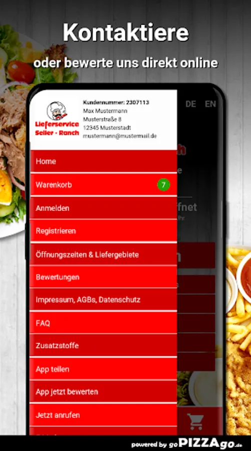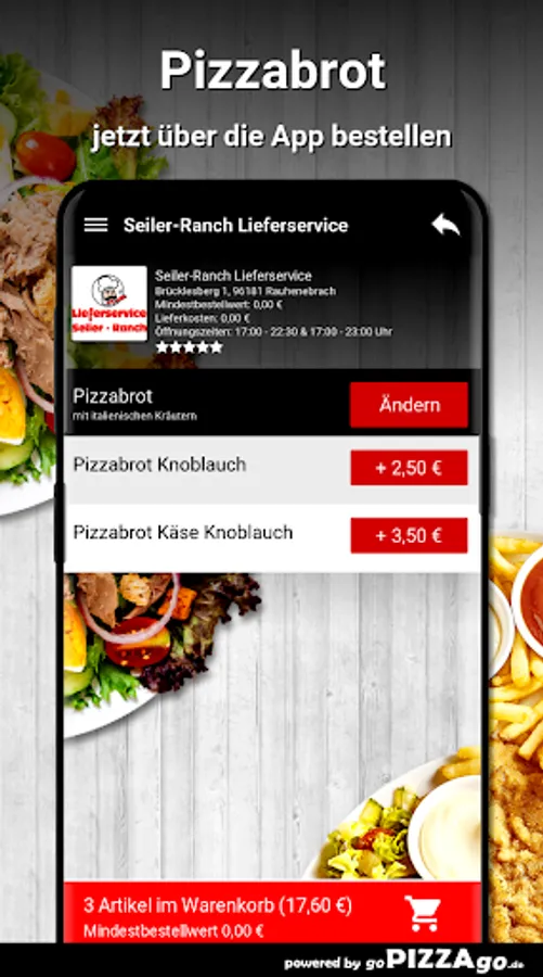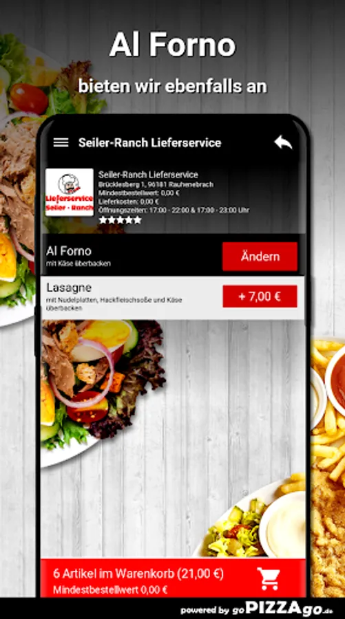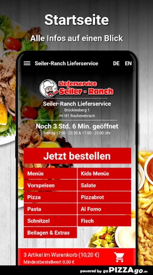 Welcome to Seiler-Ranch delivery service in Rauhenebrach. We offer: pasta, starters, salads, pizza bread, schnitzel, pizza to be safely ordered and delivered here.