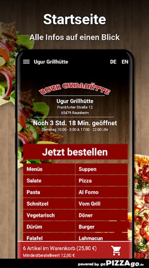 You can order and pay for many freshly prepared specialties online from the Ugur Grillhütte delivery service (Frankfurter Straße 12 in Raunheim). Choose from more than 112 delicious dishes.The most popular dishesWhen we deliver your food