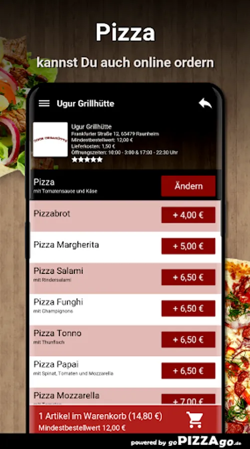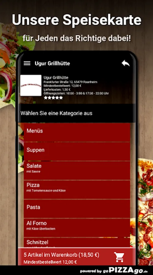Ugur Grillhütte - Your delivery service in Raunheim At Ugur Grillhütte you can easily order snacks, lahmacun, kebab, pide, salads, schnitzel, from the grill online!