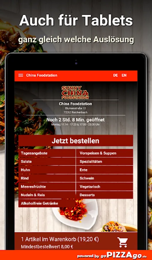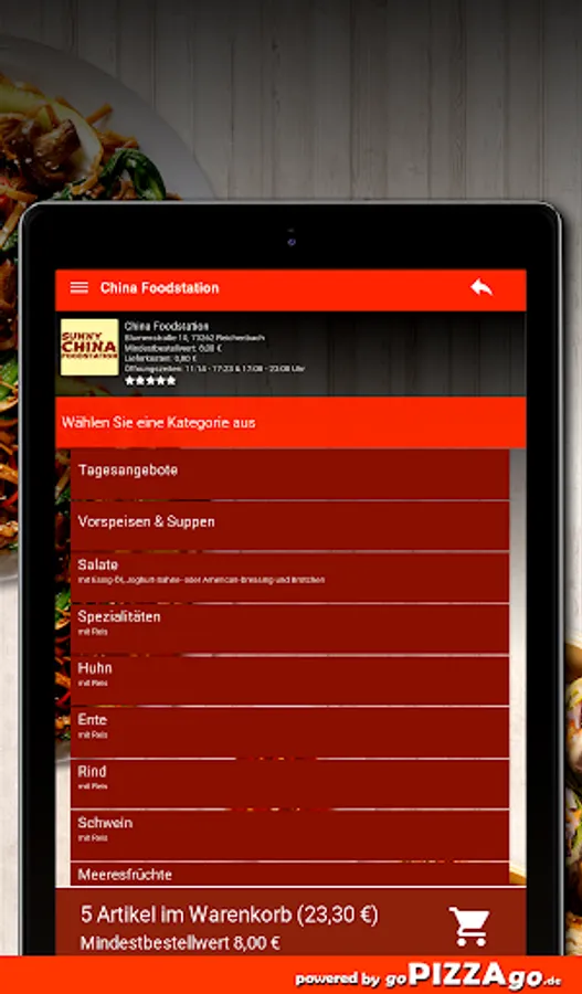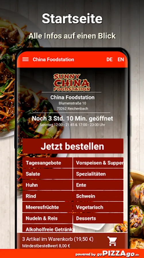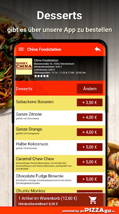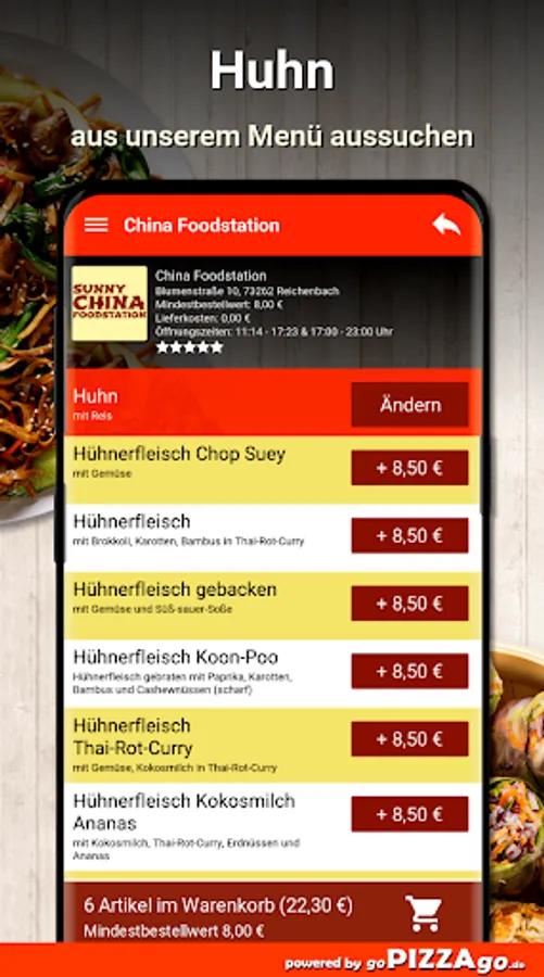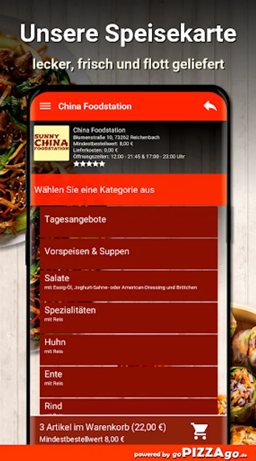 China Foodstation has absolutely delicious Caprese salad for just € 7.50 or the delivery service brings you potato salad for € 4.50. We look forward to cooking for you!