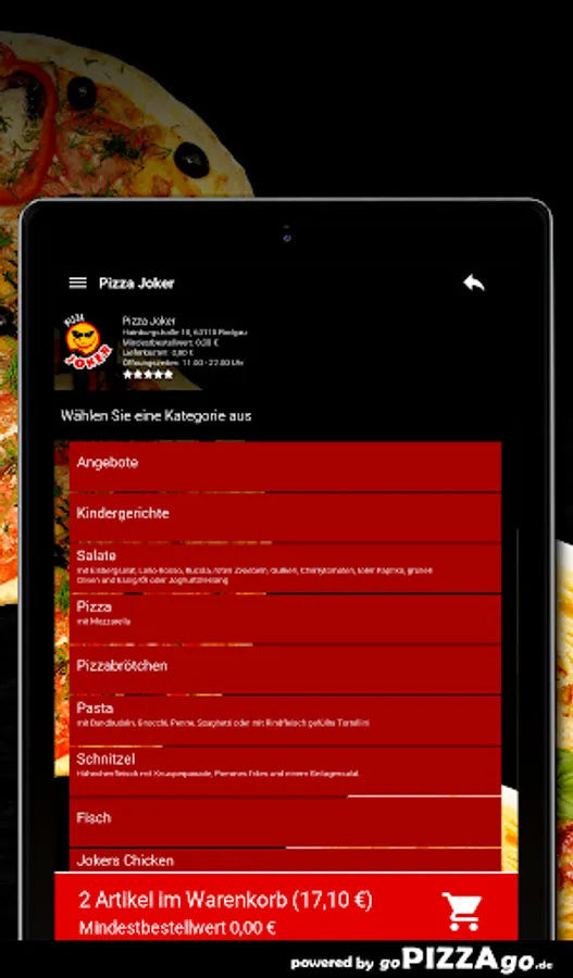 You can order and pay for freshly prepared food online in our pizza delivery service. Choose from a super range of 197 dishes (gypsy schnitzel, pizza two-face, vinegar-oil dressing, chili-cheese fries, Heinz ketchup, sandwich cevapcici, 5 cevapcici, pepper-cream schnitzel or yogurt dressing for 0.50 euros). You should also note the offers for girls and boys: Jokers Kids Box. Customers find the following specialties best. You can also order from us at these times