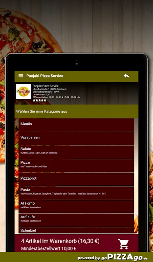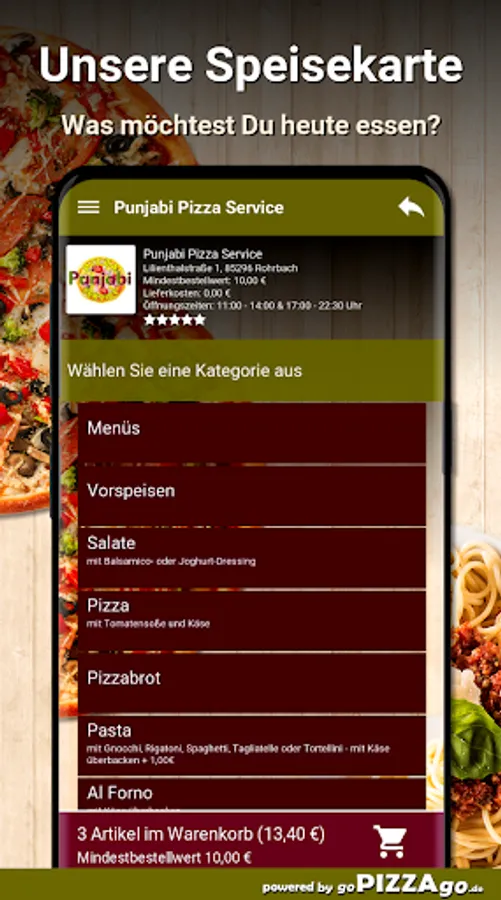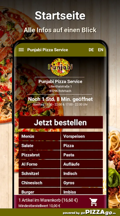 Order food online at Punjabi Pizza Service Rohrbach You can order Indian, burgers, pizza, pasta, Al Forno, schnitzel, starters and have them delivered or picked up directly from us.