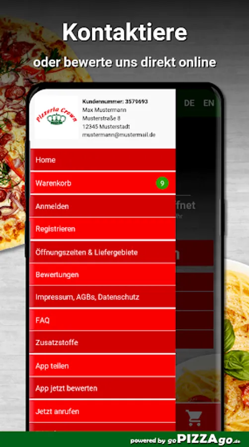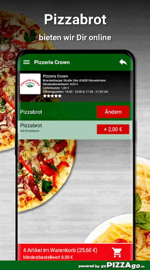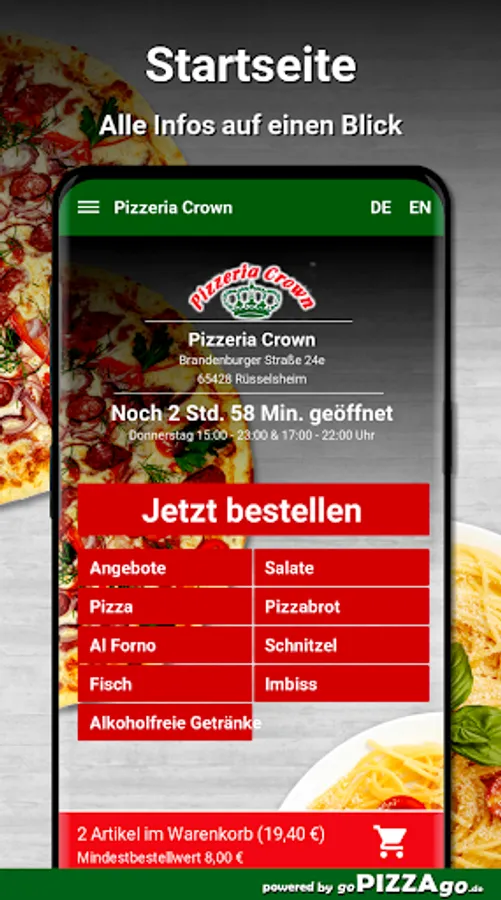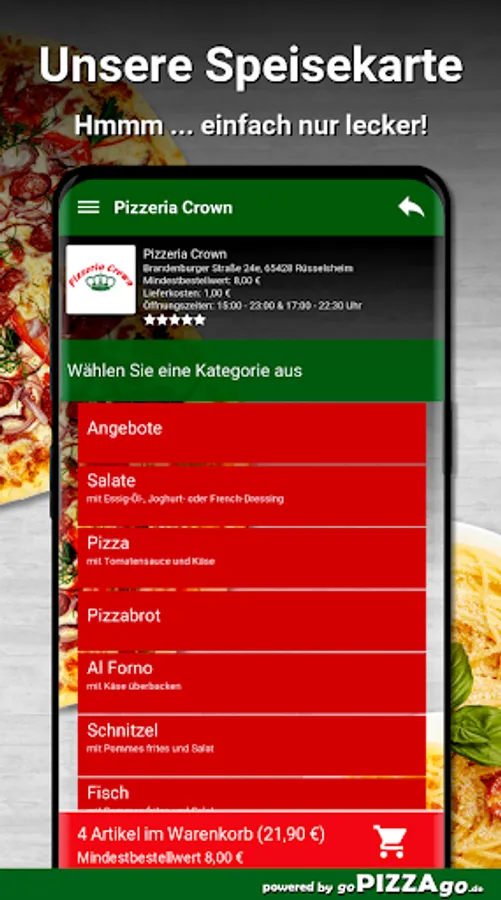 Welcome to Pizzeria Crown in Rüsselsheim! Are you hungry for Al Forno, schnitzel to order online?