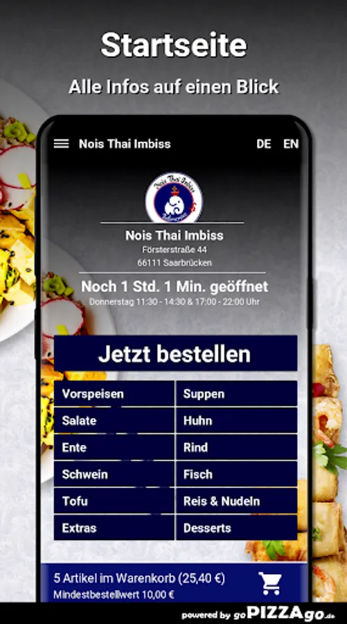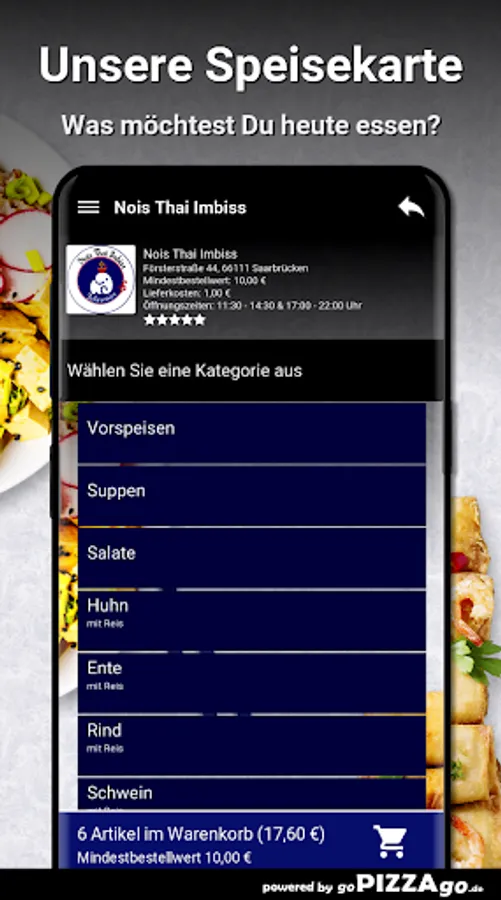 Welcome to Nois Thai Imbiss in Saarbrücken. With us you can order salads, duck, rice & noodles, chicken ... totally freshly prepared.
