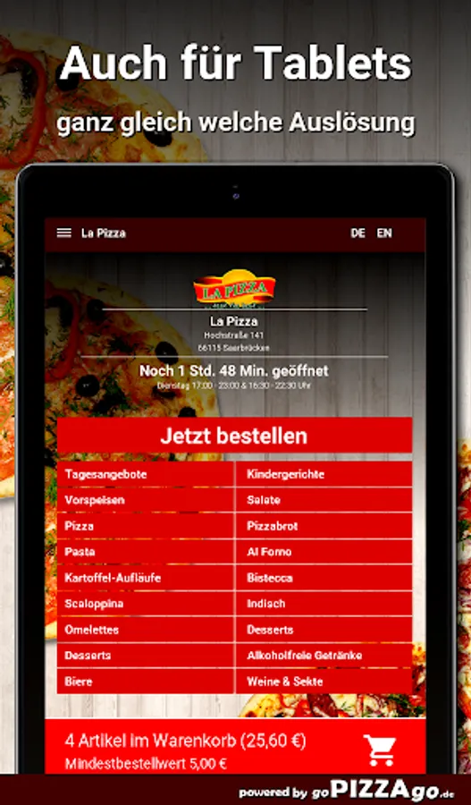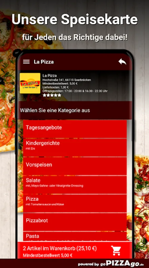La Pizza - Order food in Saarbrücken You can also order Al Forno, Scaloppina, Bistecca, omelettes and pizza online from us!