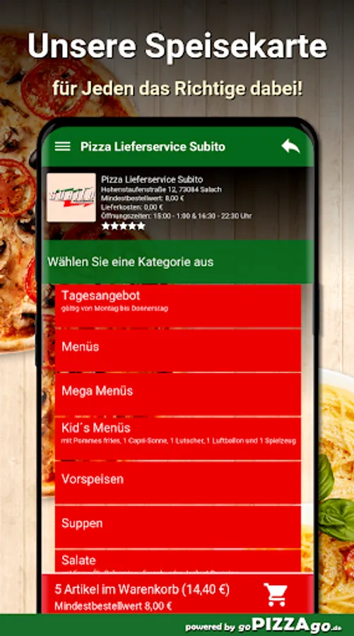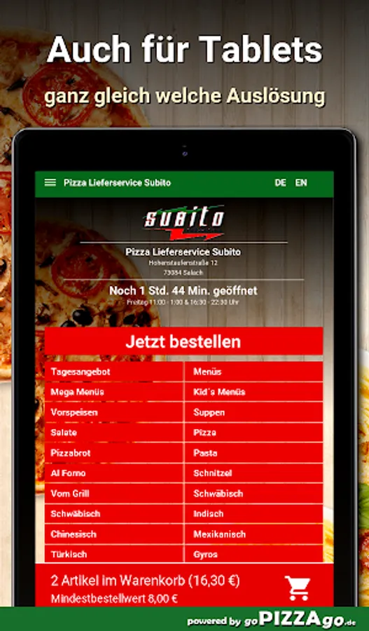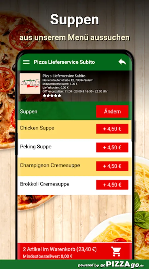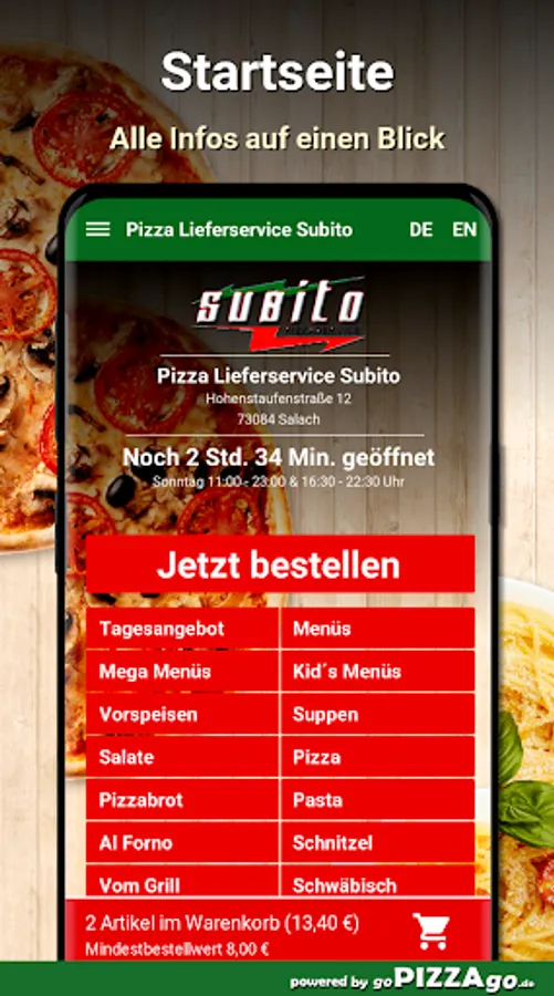 Pizza delivery service Subito in Salach - we deliver your food! We have of course: Toasts, Indian, Al Forno in Salach to order & have it delivered?