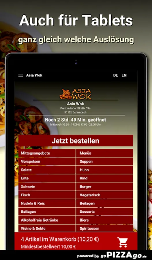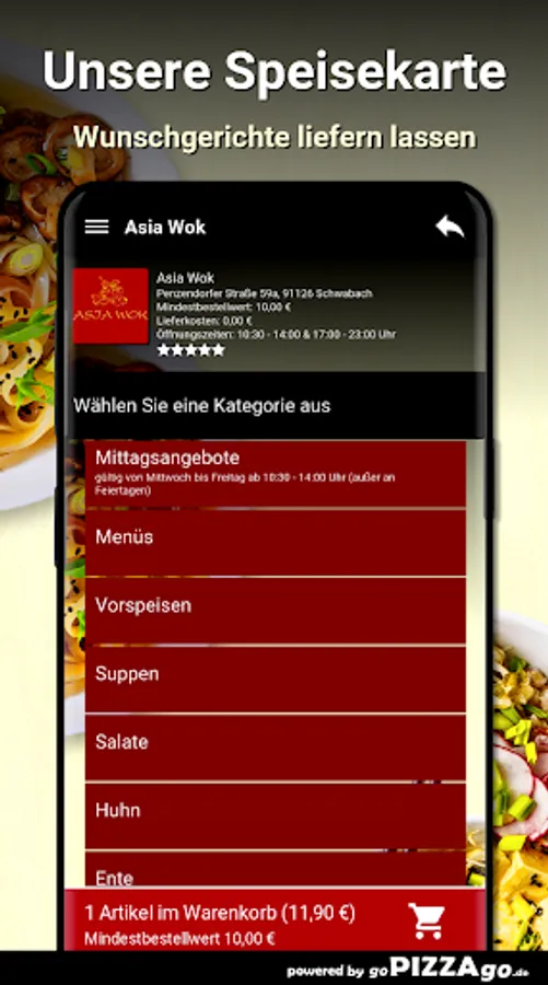 Welcome to Asia Wok in SchwabachWe deliver vegetarian, noodles & rice, chicken, burgers, salads to be delivered or picked up.