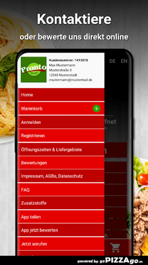 Let yourself be pampered here by the delicious Italian cuisine with your pasta variations from the delivery service Pronto PizzaHealthy, fresh and just delicious .. also try the fresh pastas at Pronto Pizza! You can get Pasta Funghi for 8.50 euros, Pasta Chef (8 €), delicate Pasta Napoli, Pasta Vivaldi (vegetarian) with gnocchi, penne, rigatoni, spaghetti, tagliatelle or tortellini, + 1.00 € for an amazing 8.50 € . Pasta carbonara. Pasta alla Panna is delivered at a price of € 8.00, Pasta Gorgonzola can be ordered for € 8.00, Pasta Mantecati and pasta of your choice are available from Pronto Pizza for just € 9.00.
