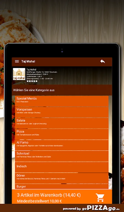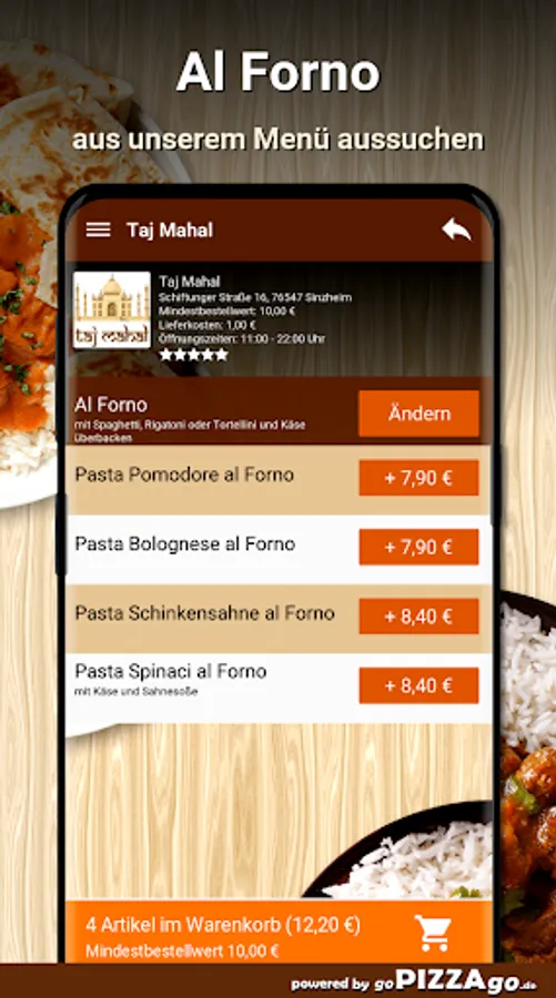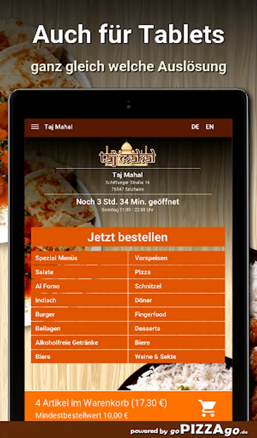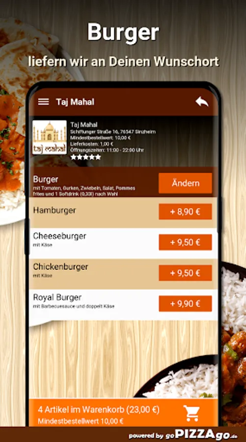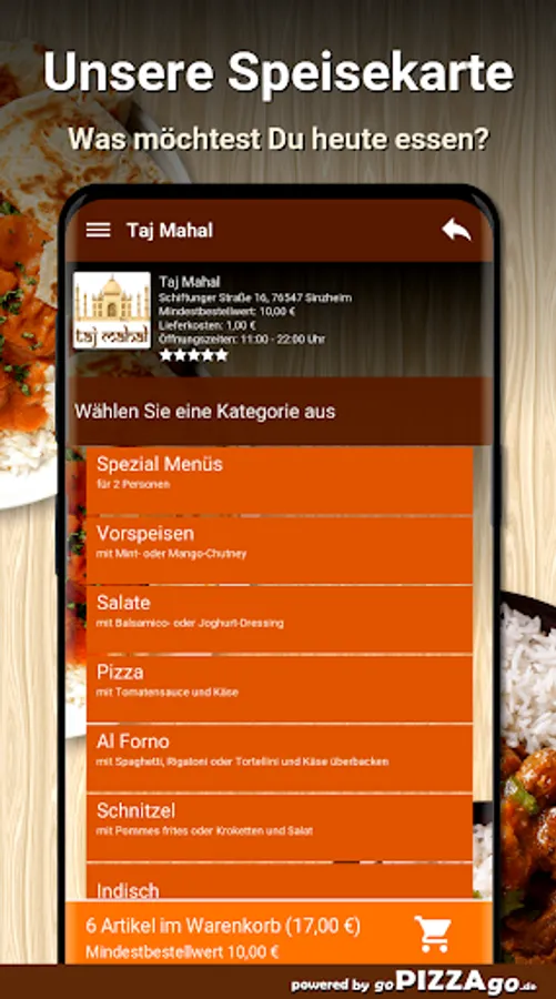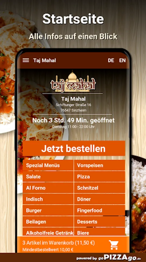 Taj Mahal - Order food in Sinzheim Do you fancy burgers, kebab, Indian, starters, salads, pizza, schnitzel, special menus to order online?
