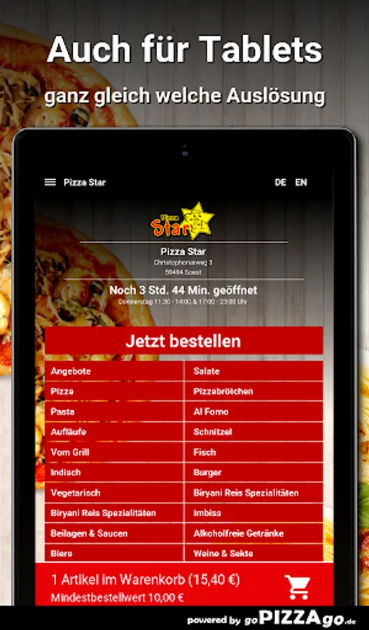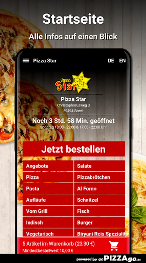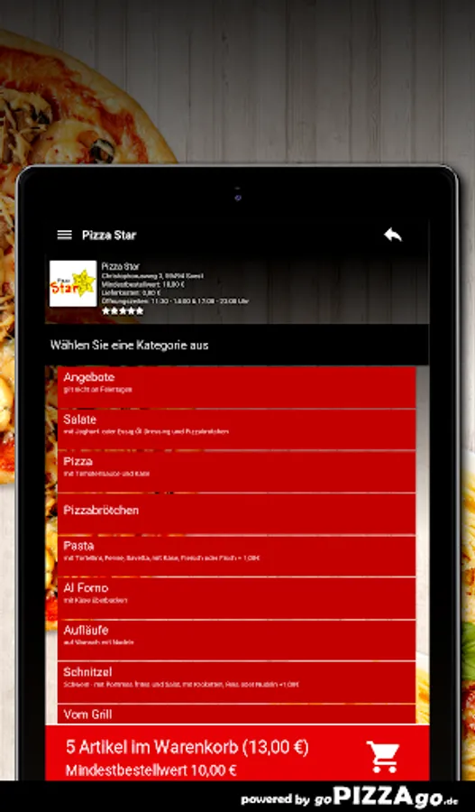 Welcome to Pizza Star - your delivery service for pizza, schnitzel At Pizza Star you can order schnitzel, pizza rolls, snacks, Indian, vegetarian, grilled, biryani rice specialties, casseroles and have them delivered.
