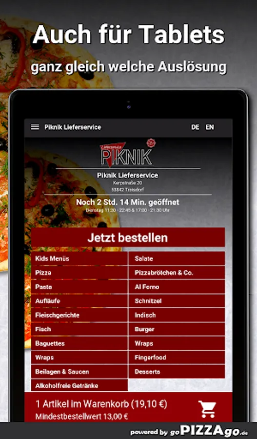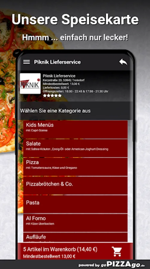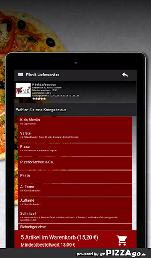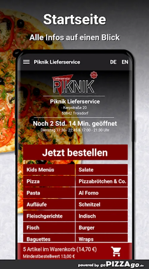 Order food online with Piknik delivery service Would you like to order fish, casseroles, pizza rolls & Co., pasta conveniently online and have it delivered or even pick it up directly?