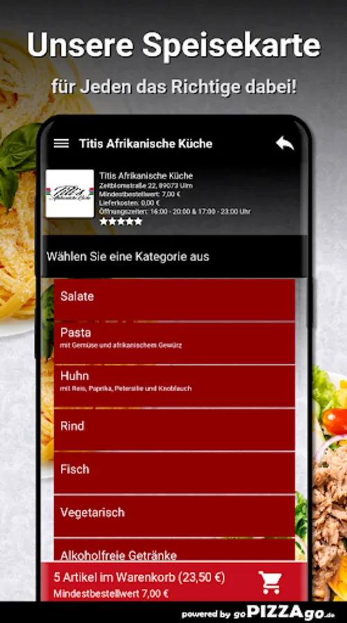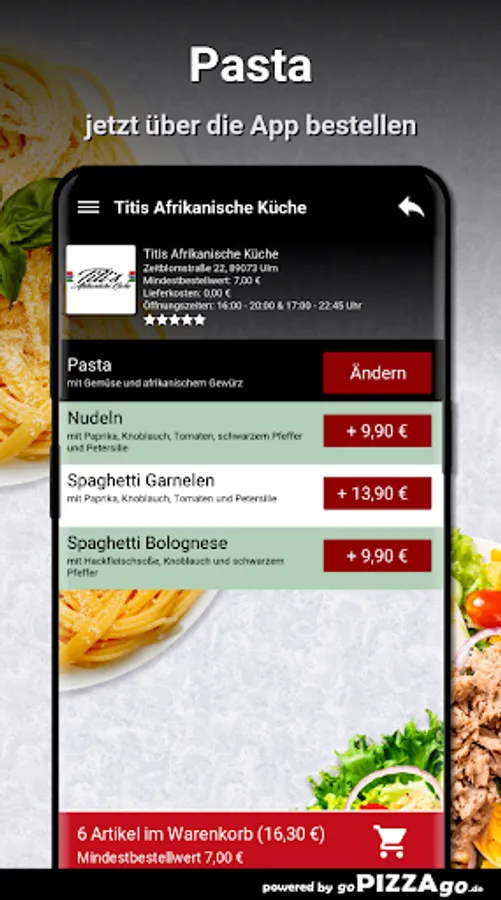 The most delicious pasta dishes that are handmade are also available at Titis African cuisine, fresh and tasty! also order the good pasta dishes at Titi's African cuisine! Titi's African cuisine has spaghetti prawns for delivery for just € 13.90, noodles are available for € 9.90 and spaghetti Bolognese.
