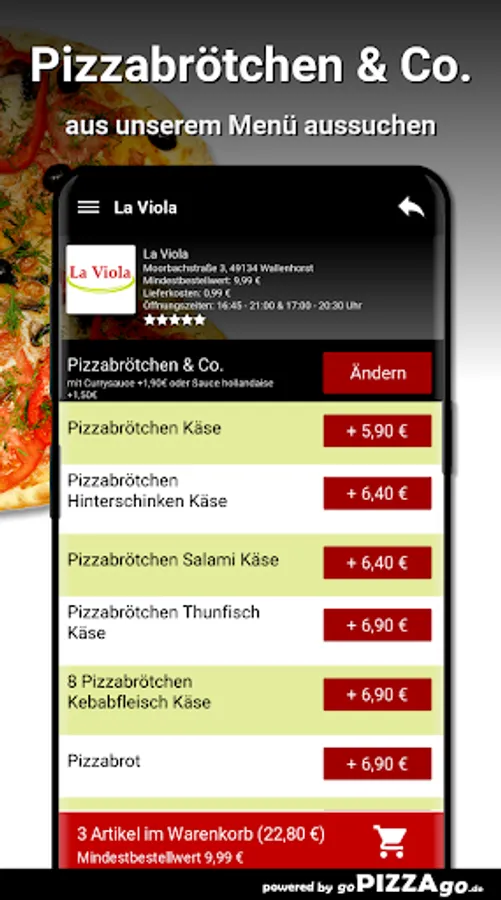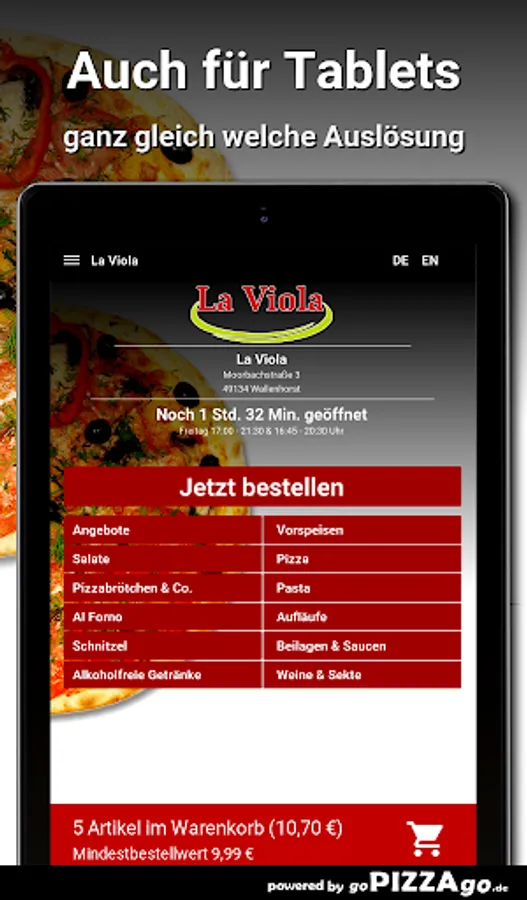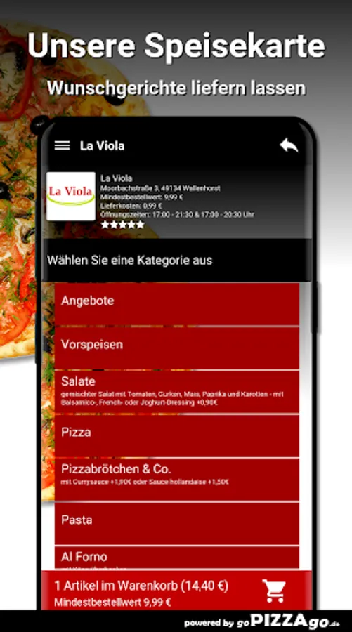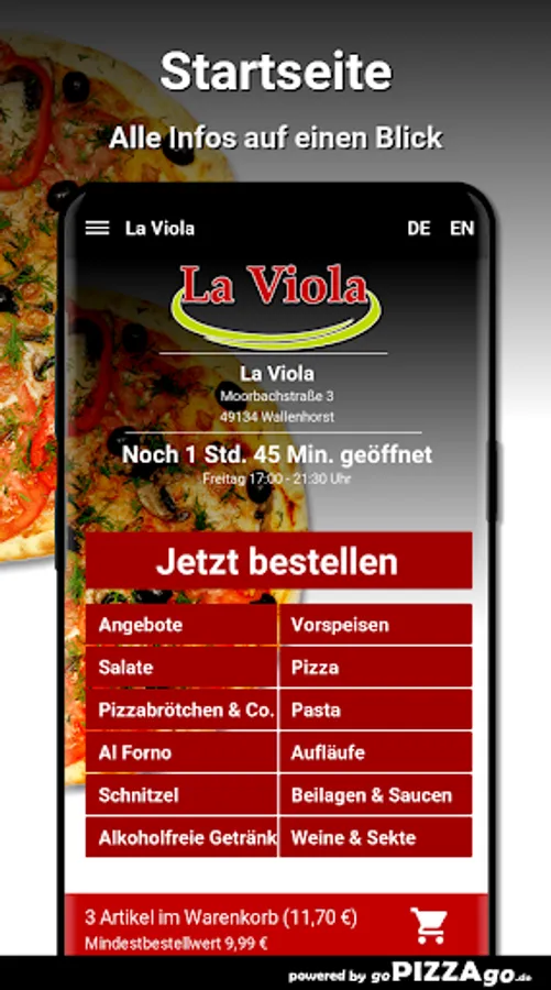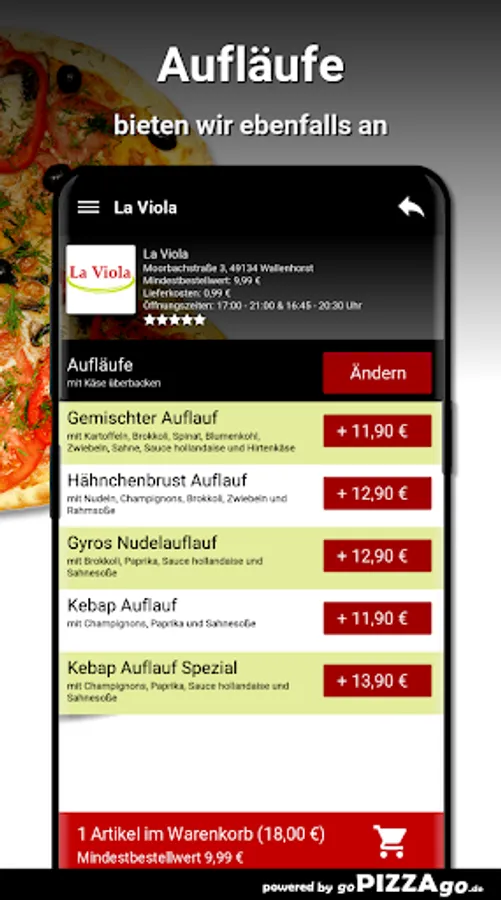 Welcome to La Viola in WallenhorstWe have: Pizza, appetizers, casseroles, pasta to simply order online?
