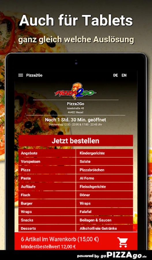 Your Pizza2Go team in 46483 Wesel