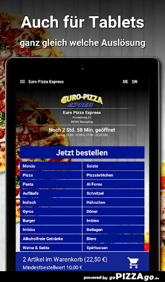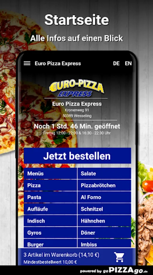 Euro Pizza Express in Wesseling - we deliver your delicacies quickly! At Euro Pizza Express you can order chicken, schnitzel, burgers, pizza rolls, Indian and have them brought home quickly!