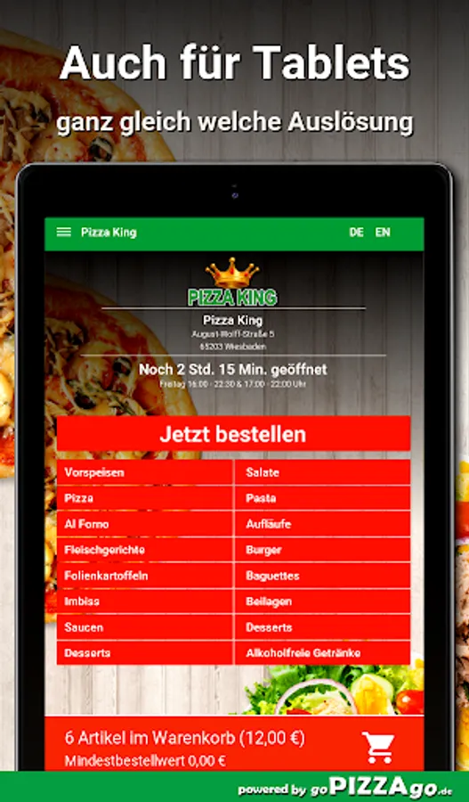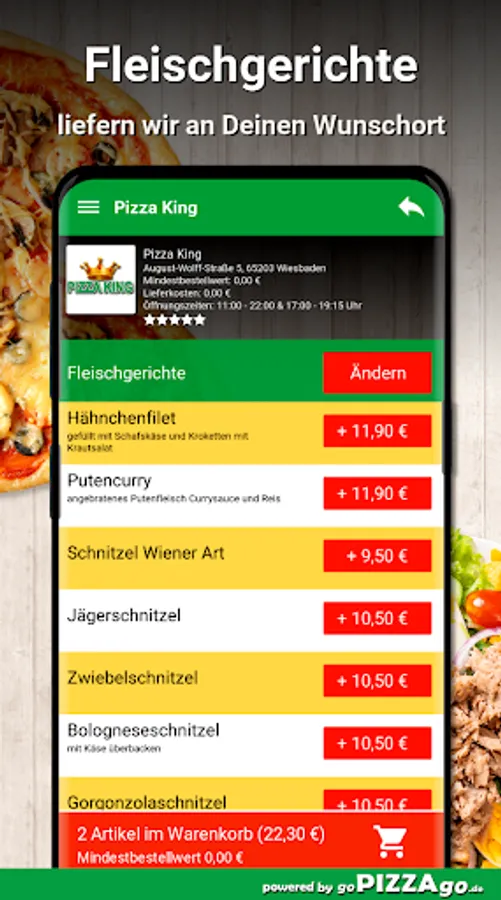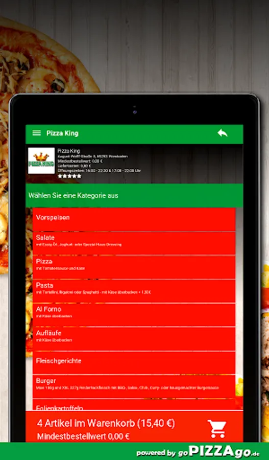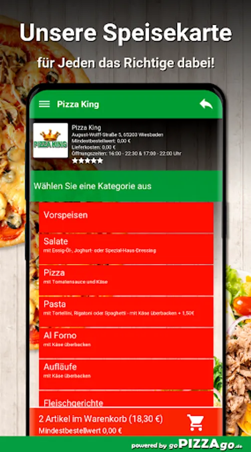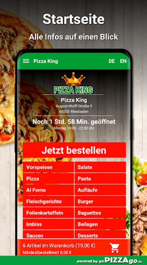 Order food online at Pizza King Wiesbaden You are currently in the mood for burgers, meat dishes, sauces, Al Forno to order and have them delivered?
