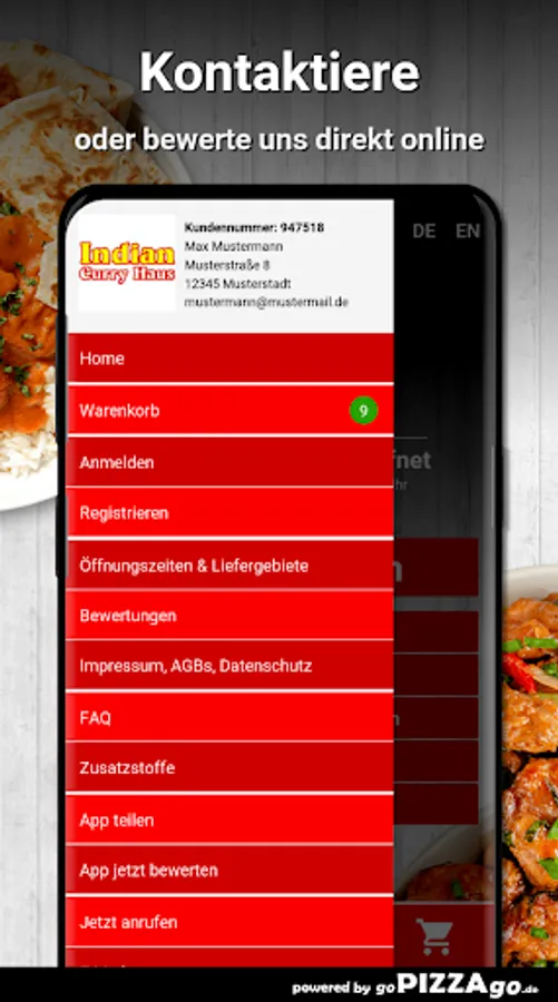 Why not order Indian dishes conveniently online from the Indian Curry Haus delivery service? We also offer you delicious feasts based on traditional Indian recipes online. Chicken Masala is available at a price of € 11.90, Aloo Gobhi Masala (€ 10.90).