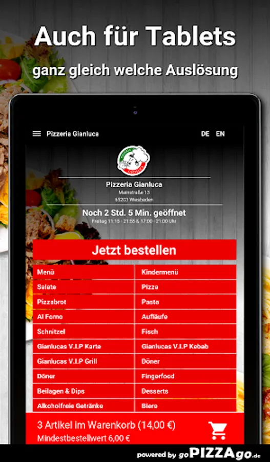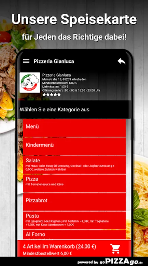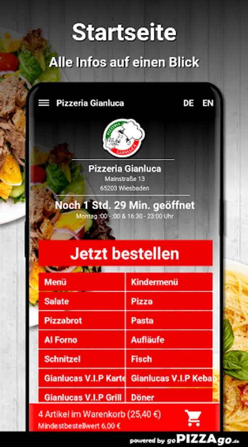 Pizzeria Gianluca - your delivery service in Wiesbaden Are you after schnitzel, pizza, finger food, doner kebab, Al Forno, Gianlucas V.I.P kebab for delivery or pick up?