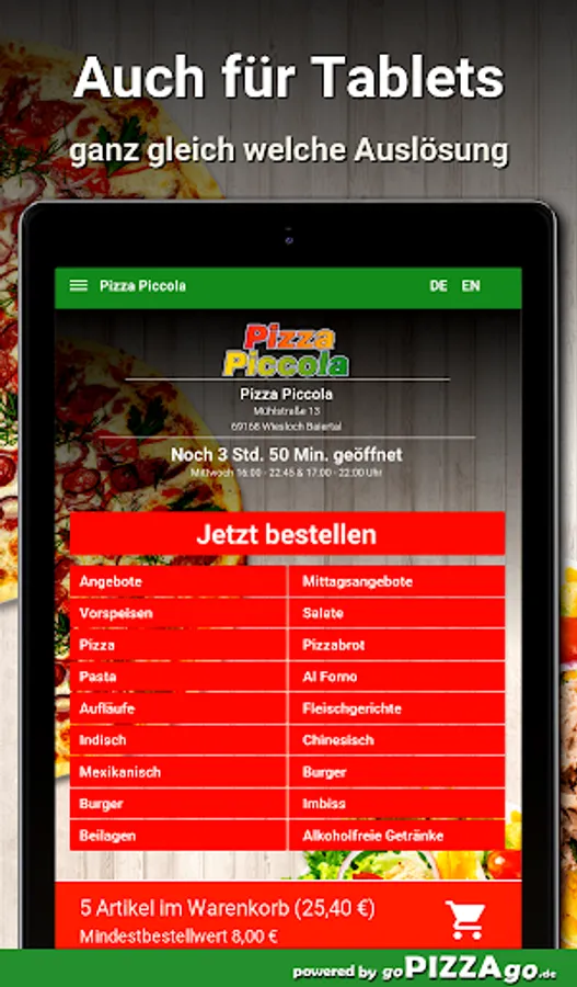 Pizza Piccola - Order food in Wiesloch Baiertal Do you fancy American, German, Mexican?