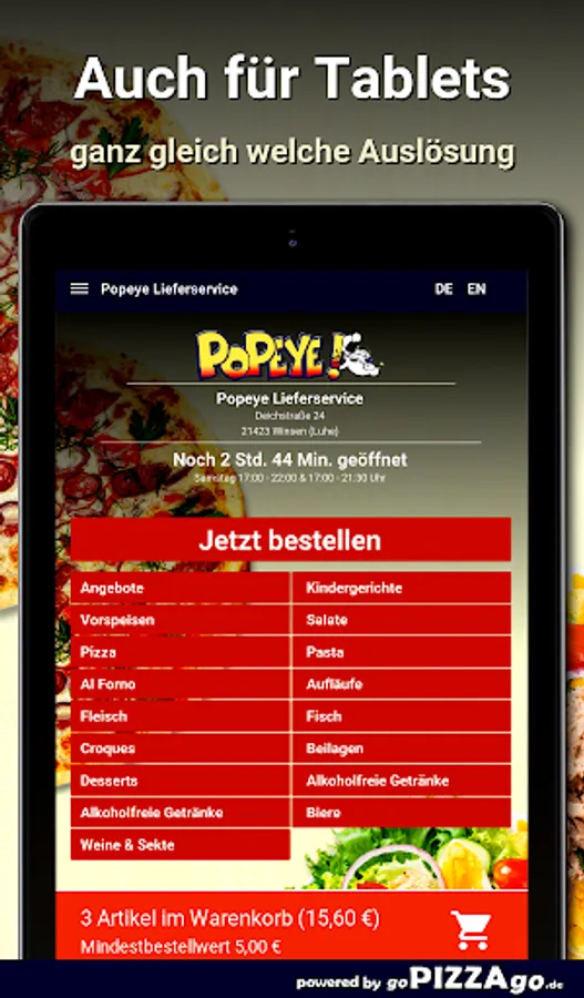 Popeye delivery service - your delivery service in Winsen (Luhe) Are you hungry for salads, fish, croques, pizza to order online today?