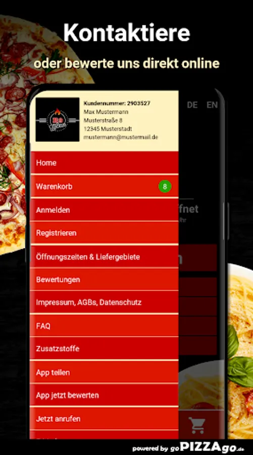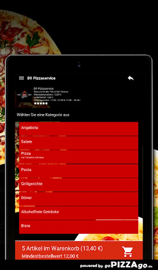 At B9 Pizzaservice you can order pizza, pasta, grilled dishes, kebab, salads online and have them delivered!