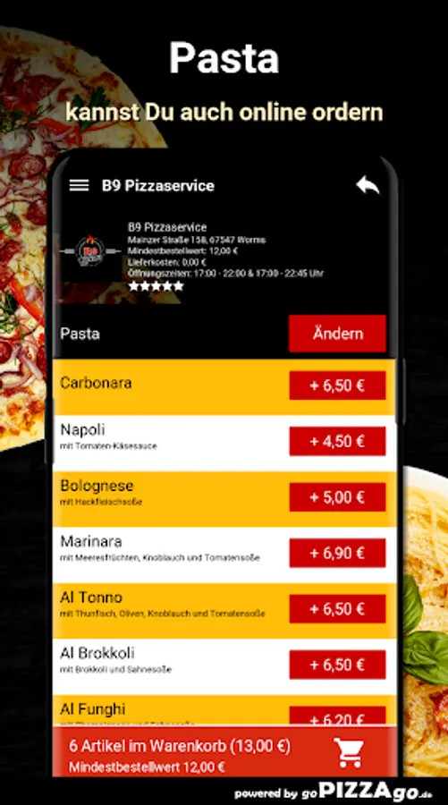 Your B9 pizza service team in 67547 Worms