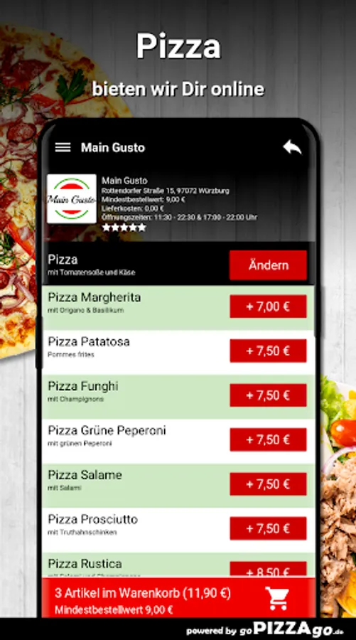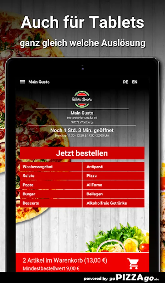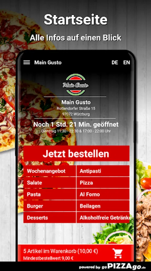 Main Gusto in Würzburg - we deliver your delicacies quickly! We deliver burgers, pizza, antipasti, pasta, salads to order online and have them delivered.