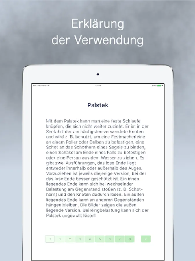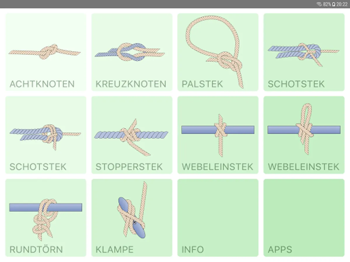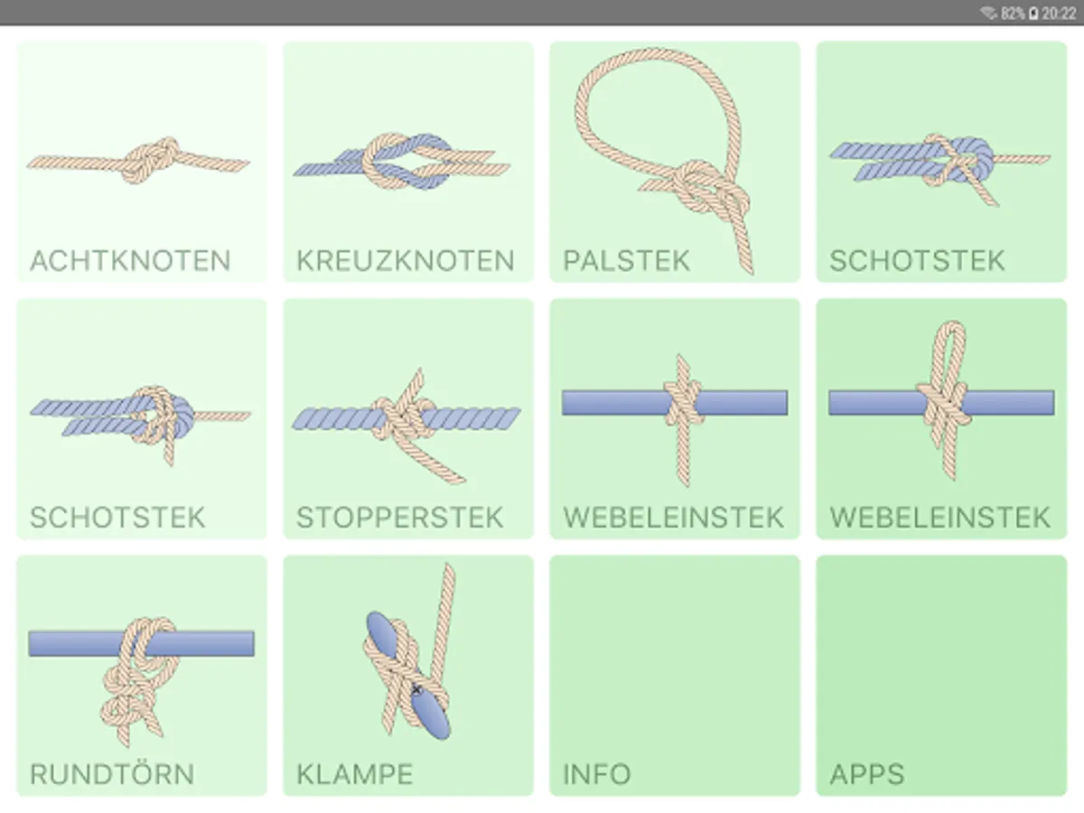 In small, detailed steps is shown how to knot the knots. Or you can run an animation. In addition, the possible uses of the individual nodes are discussed, as well as advantages and disadvantages of the different variants explained.