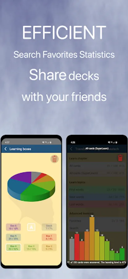 Organize your flashcards into decks, chapters and topics. You can create new groups of cards at any time to better structure learning areas and thus learn more effectively.