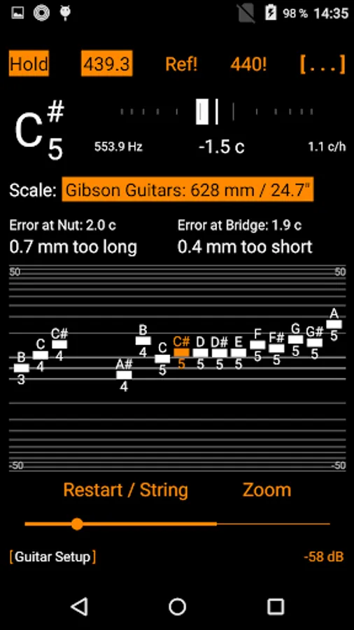- Guitar Setup: Precise intonation measurement, error and adjustment calculation
