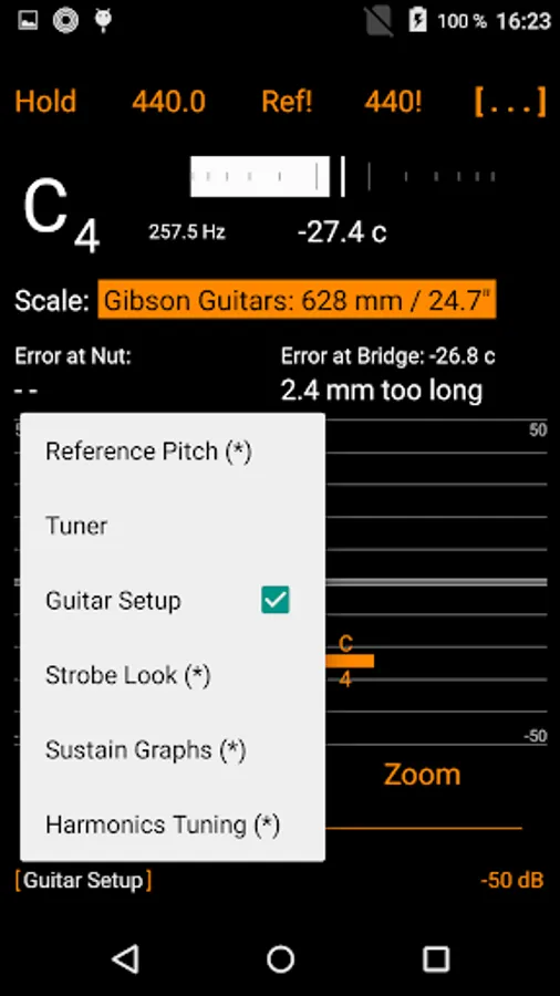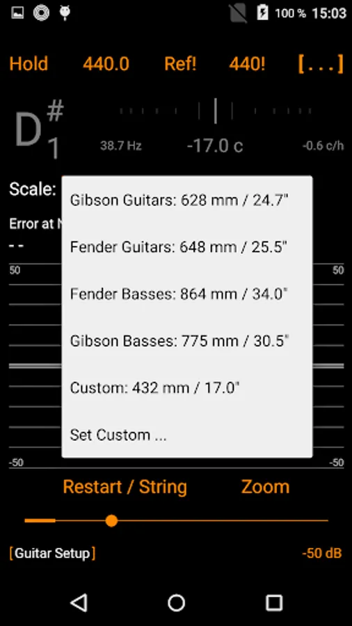 Use the app to perfectly set up your own instrument or to compare instruments in the shop, checking if the nontrivial task of nut adjustment was properly done before buying.
