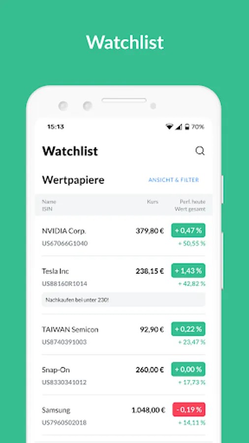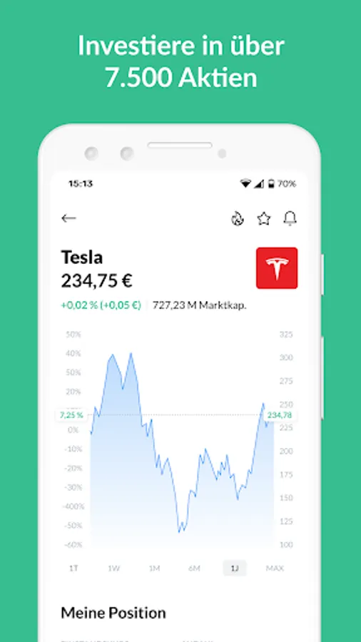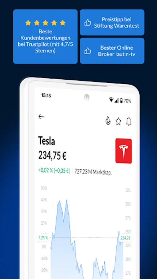 Your securities are safe in your personal bank account with the German Baader Bank. The price quality of the shares and ETFs is monitored by the stock exchange and high security standards are indispensable for us as a financial company. For example, we offer you biometric authentication or a session release via SecureTan app.
