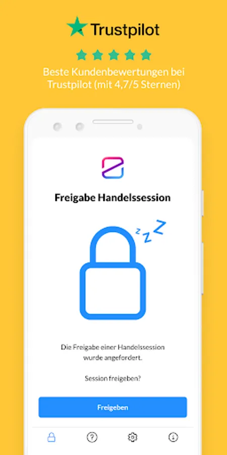 Simply register your mobile phone or several devices online. For example, as soon as you want to release a session in the future, you will be notified via push function and asked to release it directly in the app. So you can trade even easier and more efficiently!