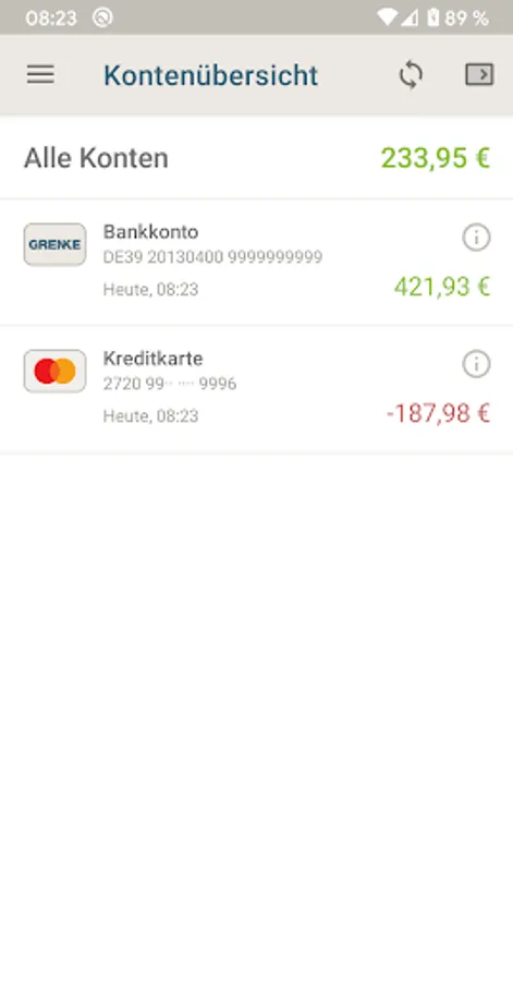 • Multi-bank capability. In addition to managing your GRENKE Bank accounts, you can also manage accounts at other banks in the GRENKE Banking App.