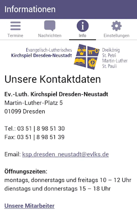 The dates and events of the Evangelical Lutheran parish Dresden-Neustadt always on hand with this convenient app:
