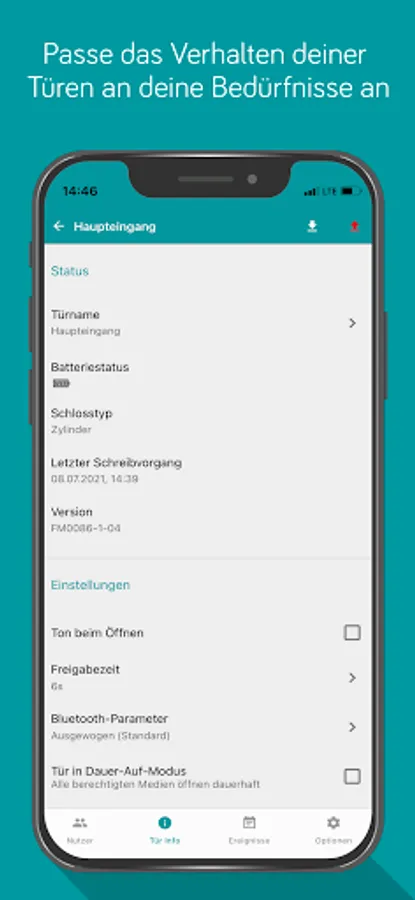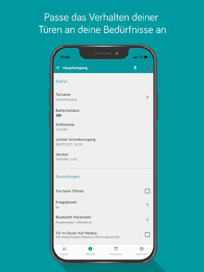 • Opening the door via smartphone (temporarily and permanently open)