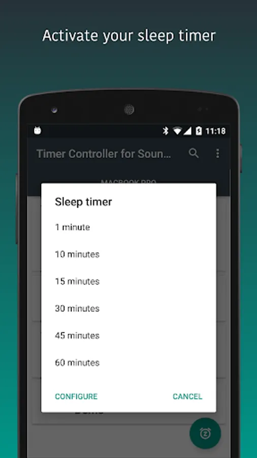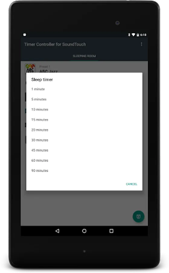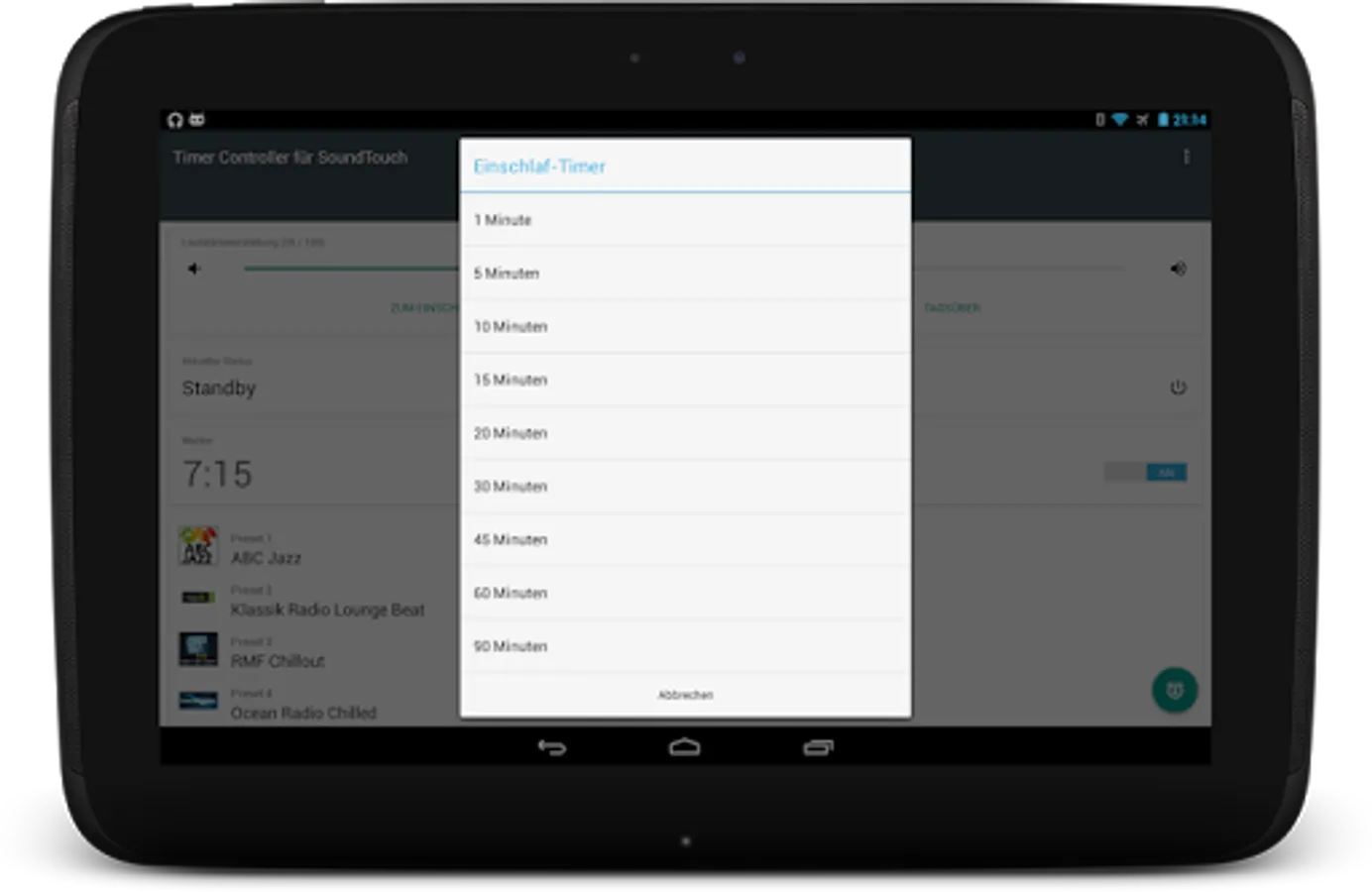 A notification informs you about the current sleep timer setting and allows you to post-pone or extend the sleep timer.