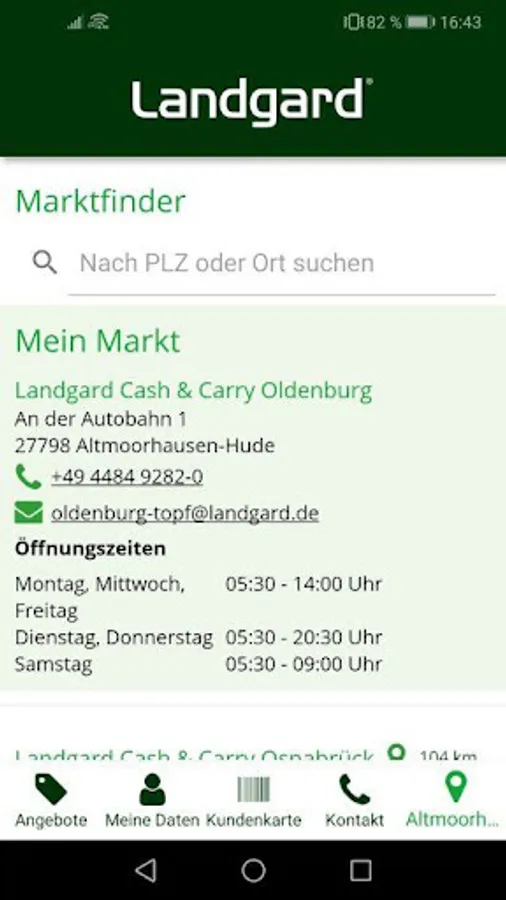 The app functions as a digital customer card when shopping in the Landgard Cash & Carry stores and informs you regularly about current offers. Additional features include information on the individual cash & carry markets such as B. Opening times or contact options and product reservations for personal collection. Promotions and competitions round off the offer of the app.
