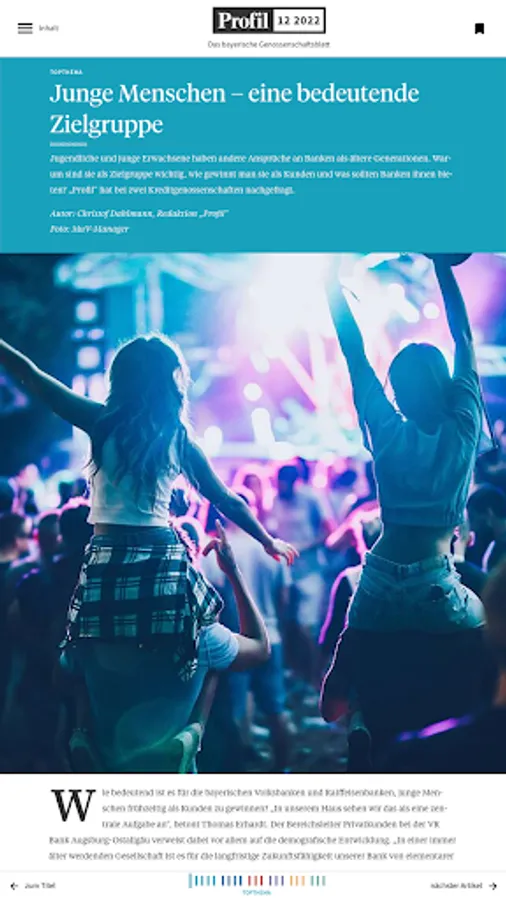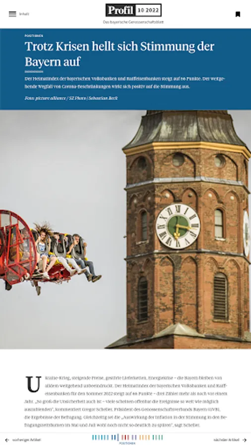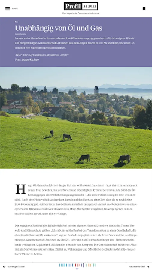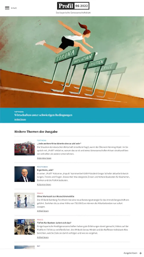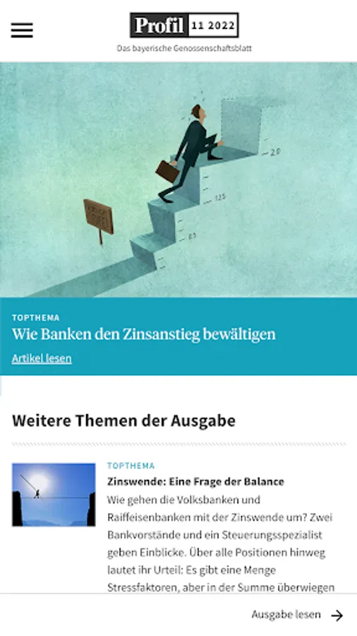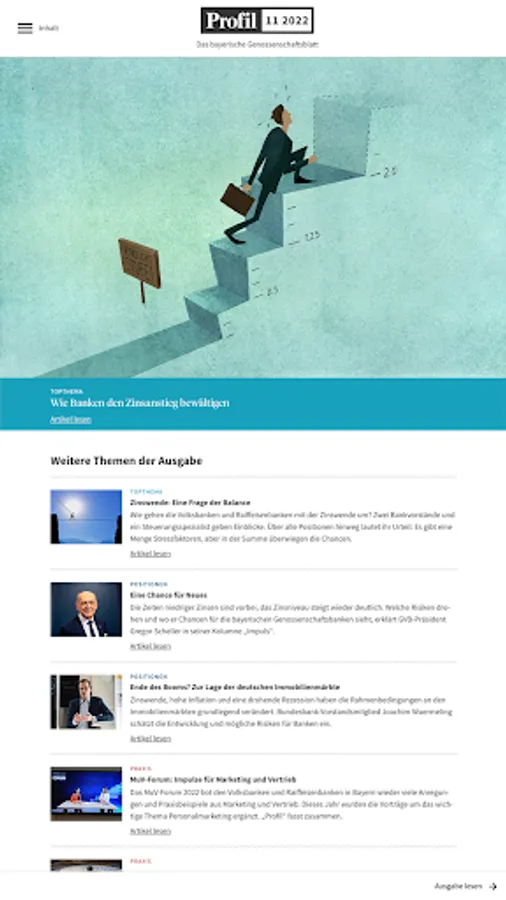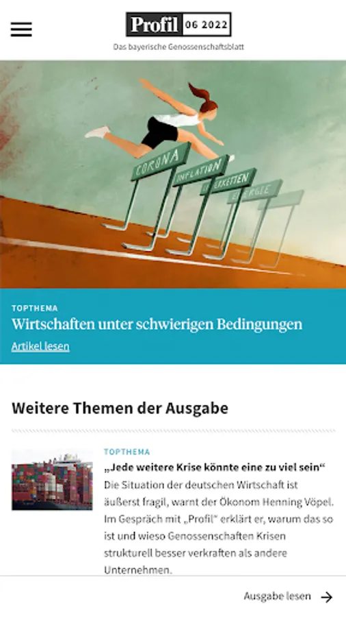 "Profile - the Bavarian cooperative newspaper" gives the Bavarian cooperatives a voice. Read the free magazine of the Genossenschaftsverband Bayern (GVB) in an app optimized for smartphones and tablets. Load now!