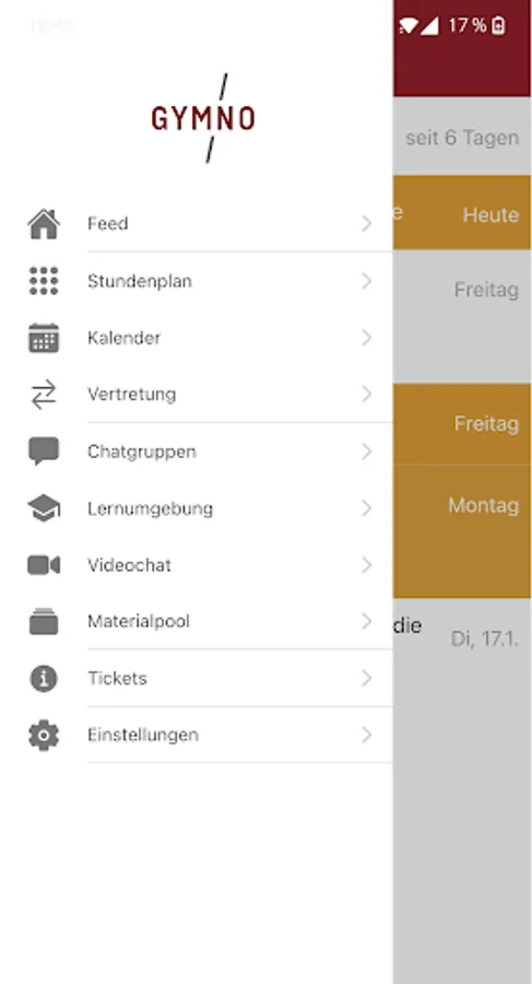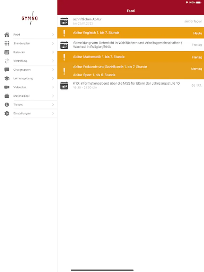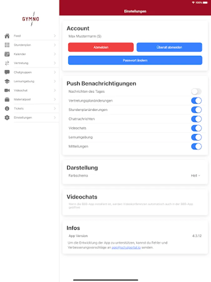 The GYMNO app enables easy mobile use of the portal of the Gymnasium Nieder-Olm. The timetable and substitution plan is displayed individually and push notifications are sent for substitution plan and timetable changes. Depending on the role, other modules of the GYMNO portal are available on the go.