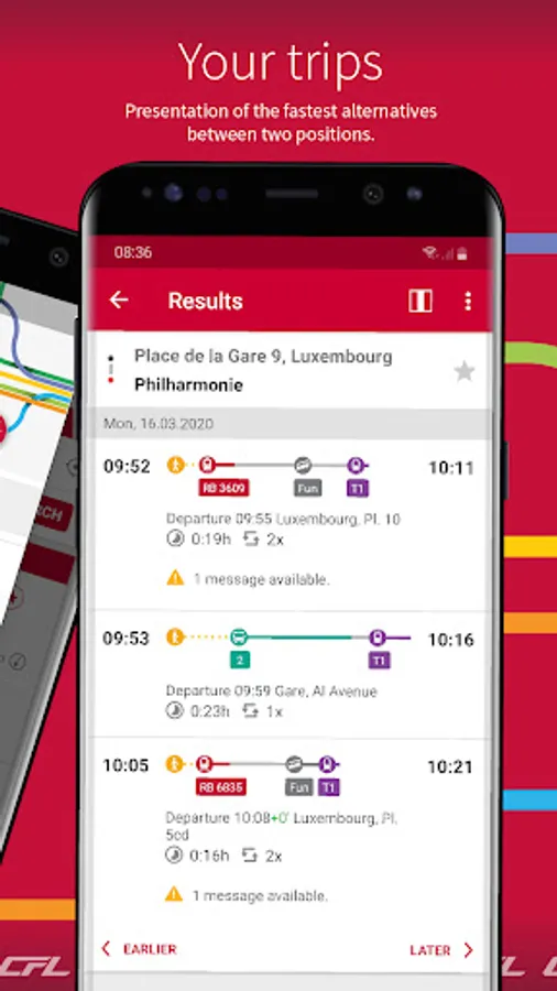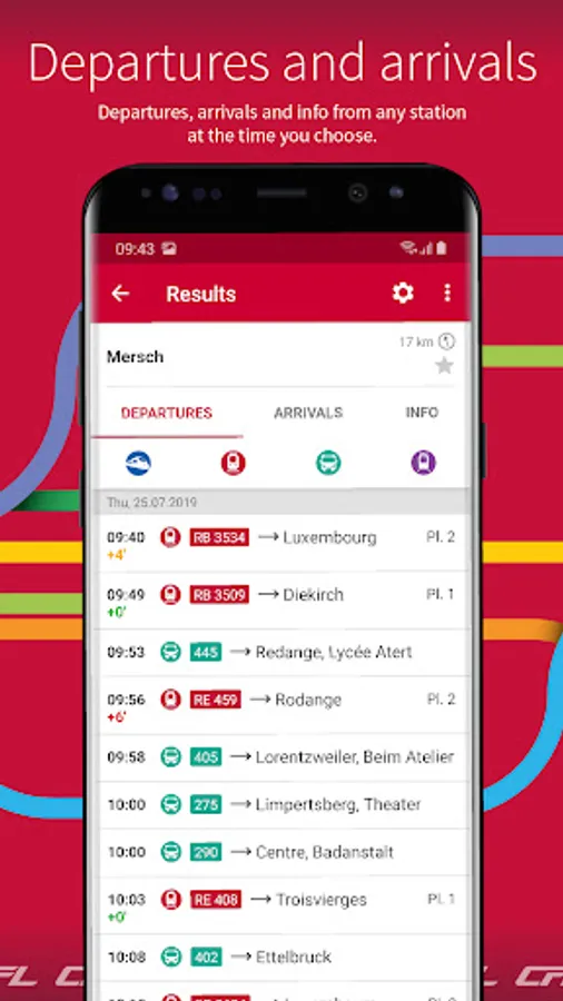The CFL mobile app is your assistant for travel planning using public means of transport in Luxembourg and beyond. Thanks to the user-friendly and simple handling, you can quickly reach your destination: simply enter the start and destination, select the desired journey period and your planning is already done. Alternative routes and means of transport are only a finger swipe away. Europe-wide timetable information and real-time information always help choosing the travel connection that fits you best. Thanks to the integration of a multitude of points of interest and Luxembourgish addresses, the application allows you to travel door to door in Luxembourg.