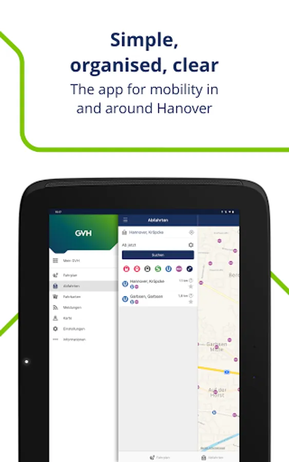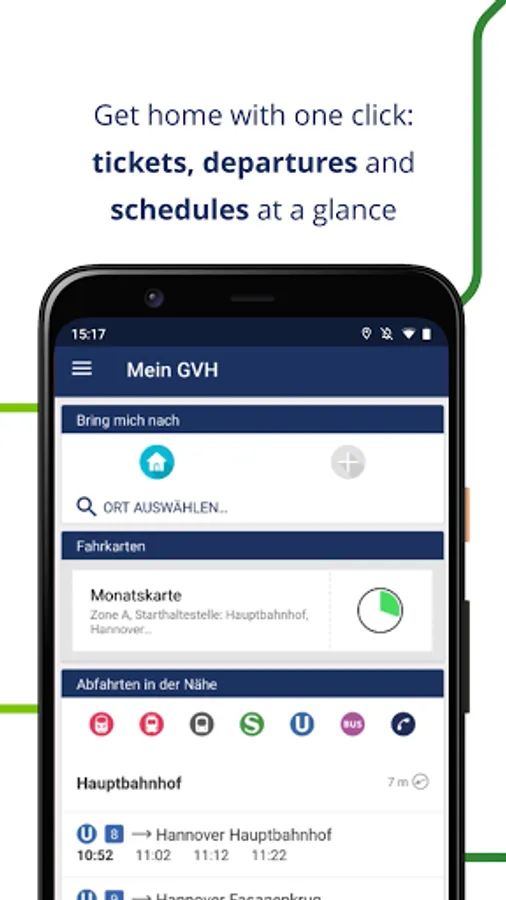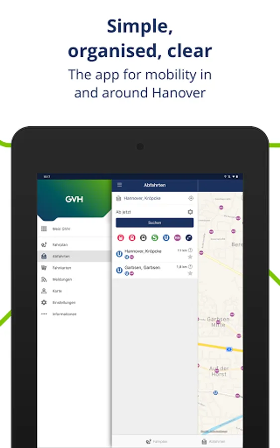 Travel smarter within the entire GVH area: Our user-friendly app provides you with your personal ticket machine at all times. Individual travel information and current announcements are included.