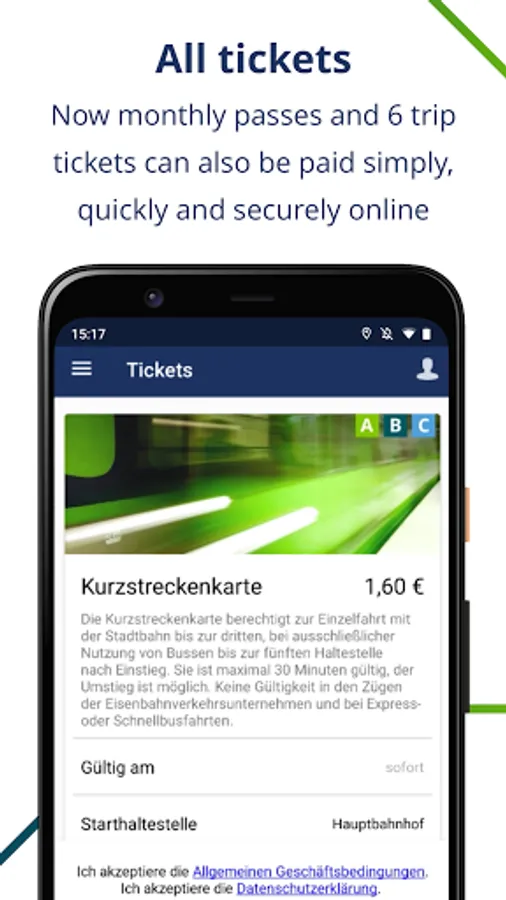 One-way, day and monthly tickets - the entire GVH ticket selection is available to you at any time.