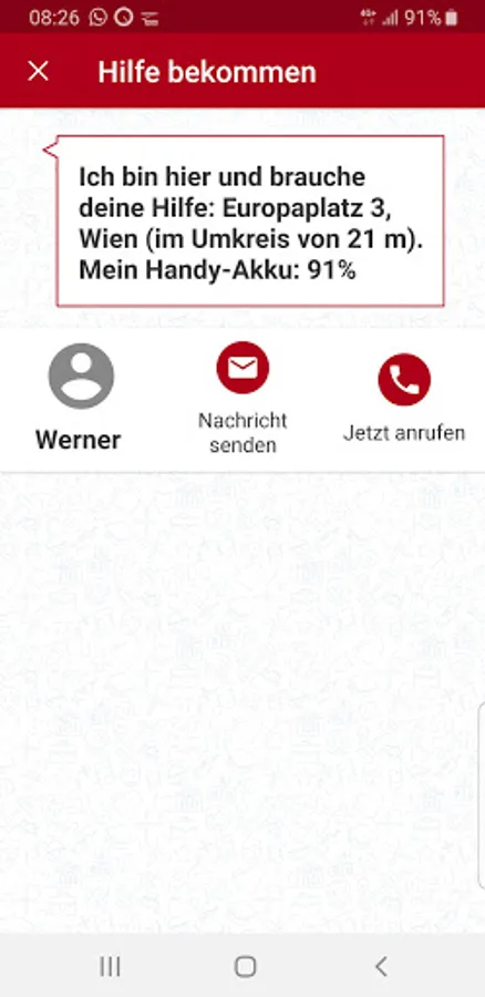 Just as destinations, so-called "helpers" can also be created in the app. Contact details of these helpers are memorised. The user, for example children, can easily and quickly connect with helpers via phone call or SMS when getting lost. The user’s current location and the remaining battery life are automatically sent to the helper via SMS.