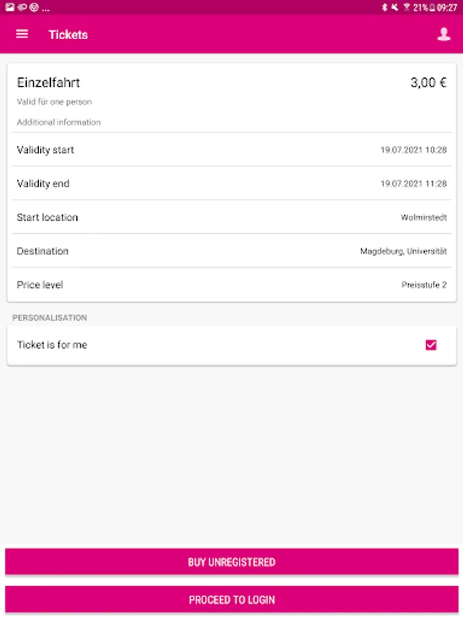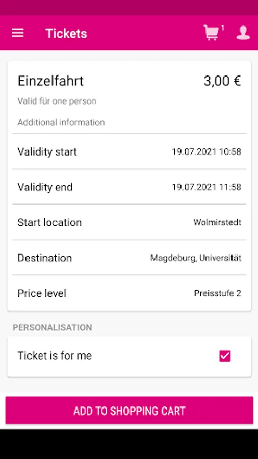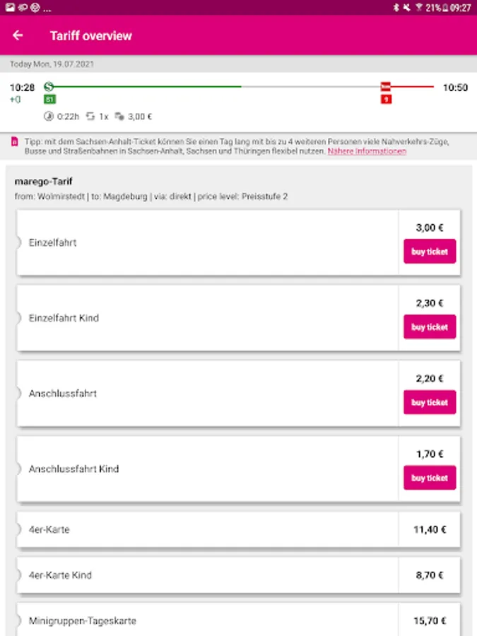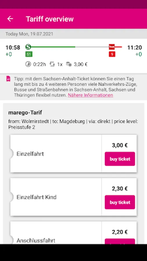 Overview of the current fares and purchase of tickets of the MDV, the marego as well as the railway transport.